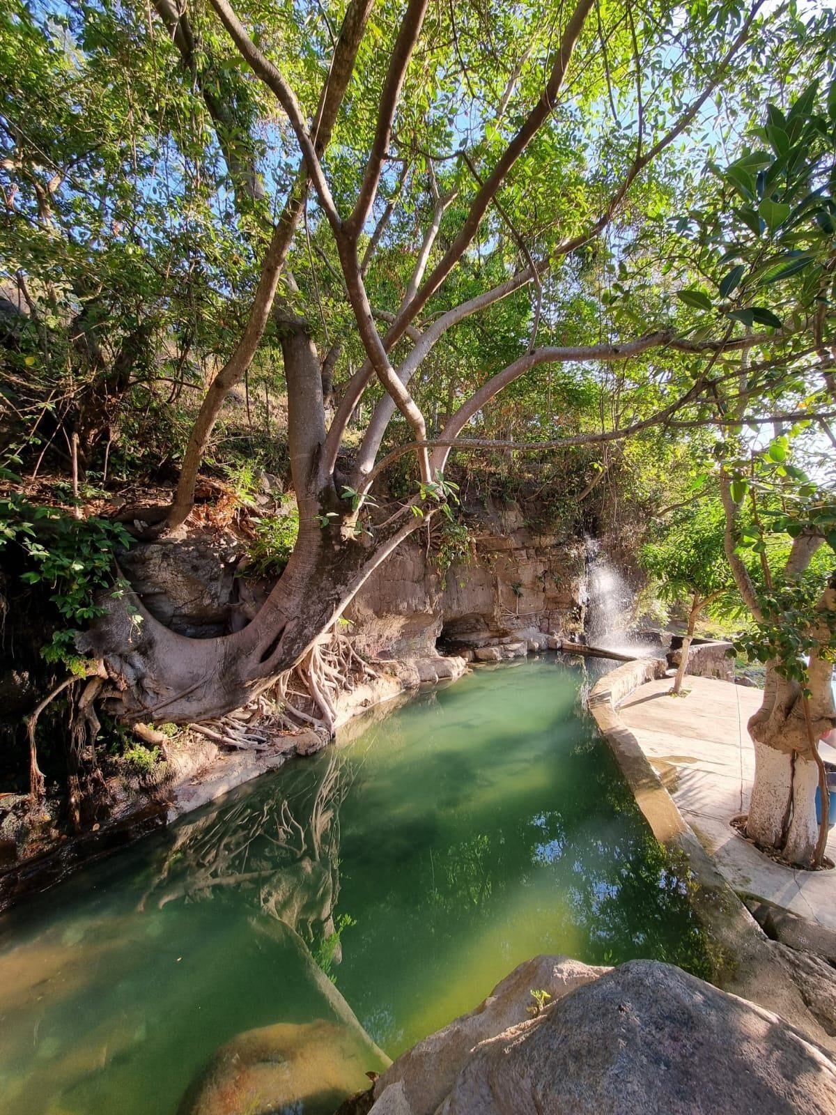 Es un lugar más tranquilo y natural, aunque no tiene grandes toboganes cuenta con un río natural y las aguas de las albercas son calientitas. Tiene cabañas, área de camping y restaurante, los precios no son tan altos a comparación con Las Flores o los Camacho. No hay tanta afluencia de gente. La vista a las montañas es divina. Lo malo de aquí son los accesos y el camino para llegar, tampoco hay transporte público directo.